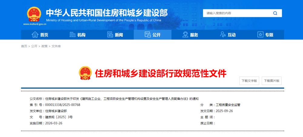 住房城乡建设部关于印发《建筑施工企业、工程项目安全生产管理机构设置及安全生产管理人员配备办法》的通知
